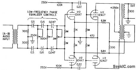 Provides low-frequency phase equalization for the A-B channel, using variable R.C high-pass filter sections that can be adjusted for cutoff between 5 and 25 cps.-Modifying an F-M Transmitter for Compatible Stereo Multiplex, Electronics, 34:28, p 60-62. (View)