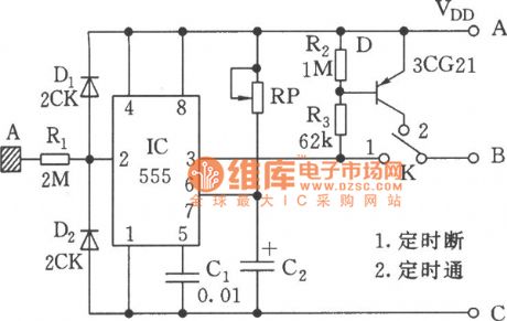 Originally this circuit was an electrified time-delay control circuit. The delayed time is decided by R1 and C1. But when watchdog circuit is added, it can be used as observation circuit for certain application systems. (View)