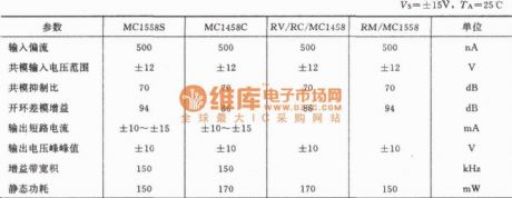 The main parameters (typical) of the dual op amp 1458 (1558):
