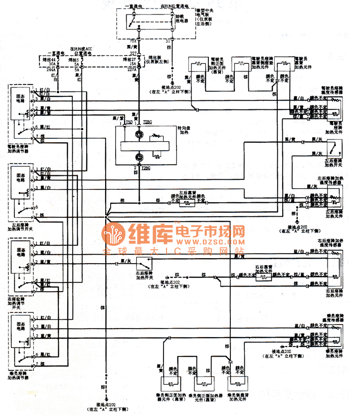Audi A6 front seat heating system circuit diagram is shown as the chart.
