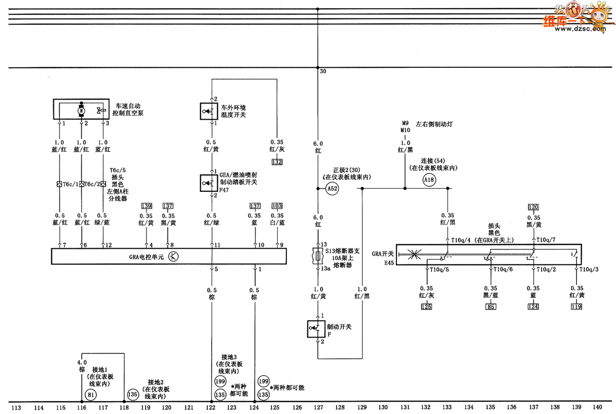 Speed electronic control unit、car external ambient temperature switch、brake switch and vacuum pump circuit diagram as shown