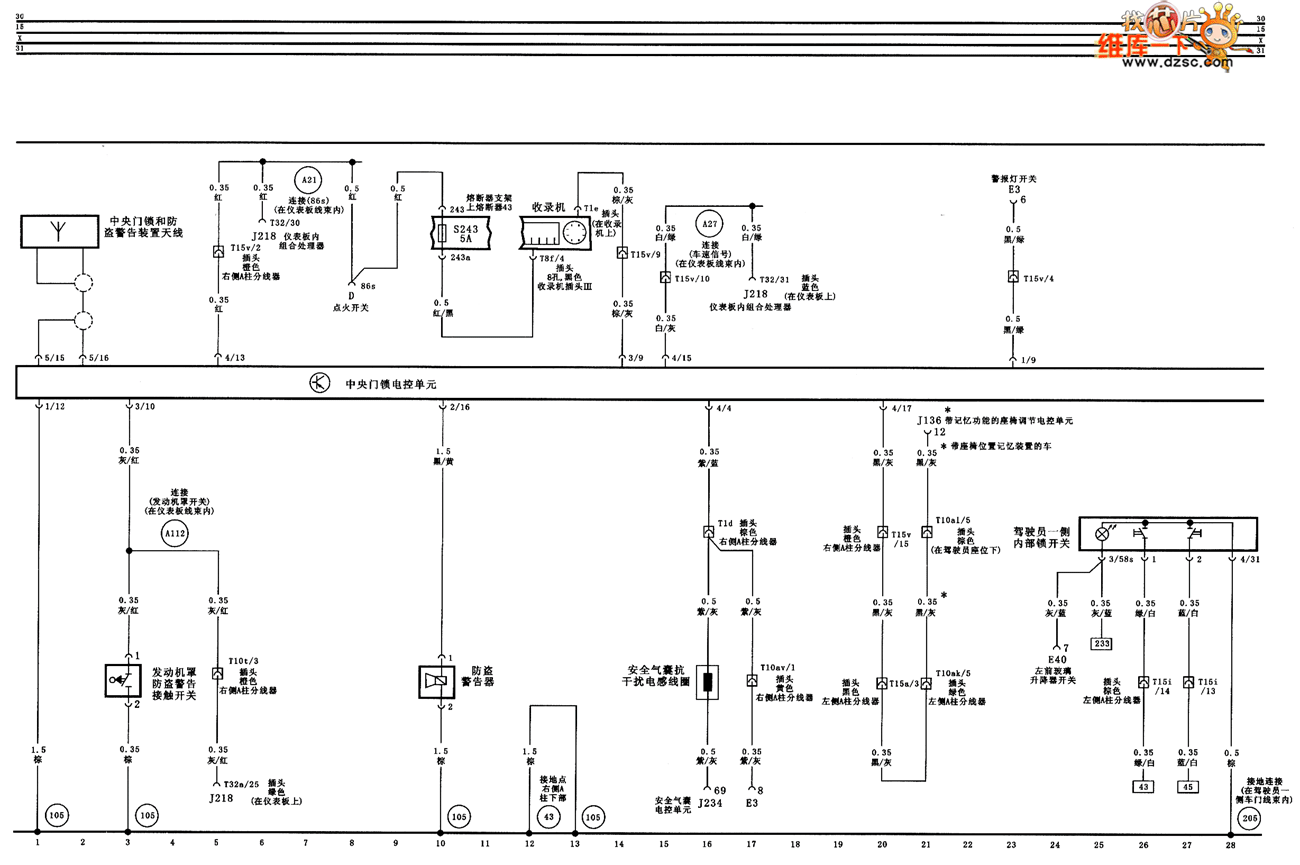 Centre gate lock electronic control unit、centre gate lock、anti-theft device and anti-theft warning device circuit diagram as shown
