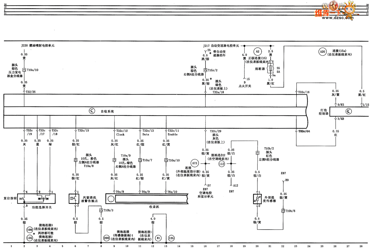 Self-checking function selection exploitation、instrument board and external indicator light circuit diagram as shown: