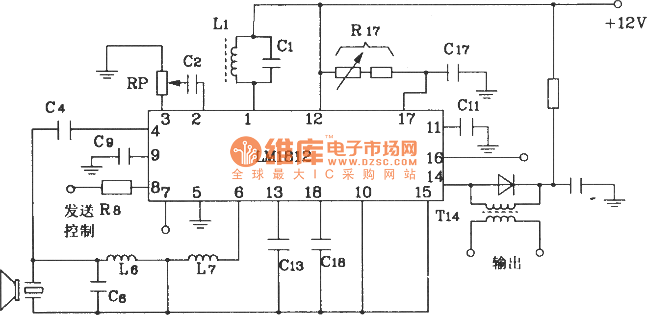 LM1812 is an excellent universal ultrasonic integrated device which can send and also receive the ultrasound. The chip includes: Pulse modulation type C oscillator, high-gain receiver, pulse modulation detector and noise suppressors detector system. It can be used for remote control, alarm, automatic door control and communications and can also be used for industrialmaterial or liquidlevel's measurement and control, range and thickness measurement, etc. It is widely applied in rain gear.