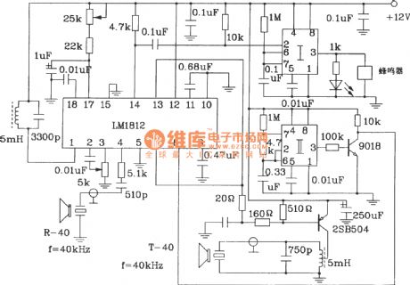 Car reversing anti-collision alarm circuit composed of LM1812.