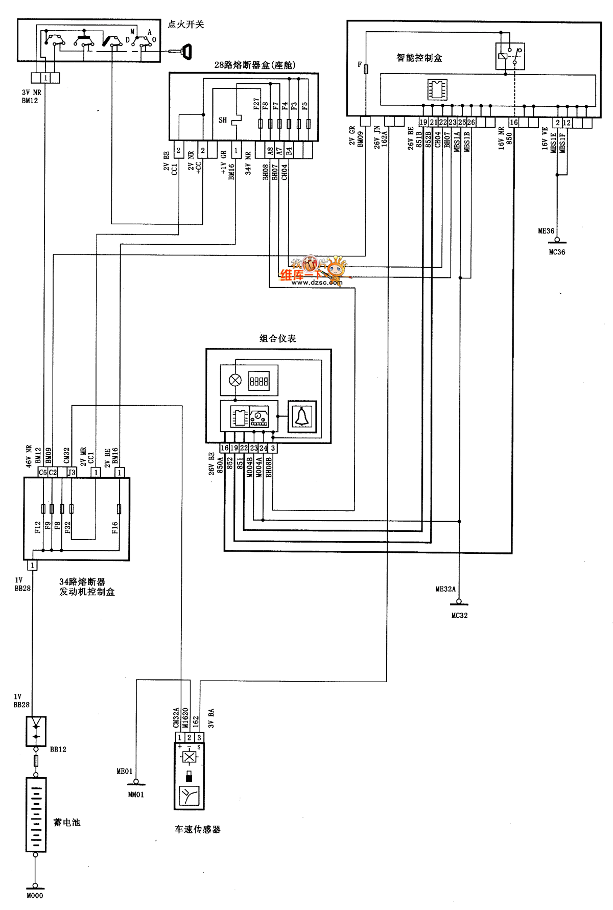 Dongfeng Citroen Picasso(2.0L) saloon car overspeed warning circuit diagram as shown