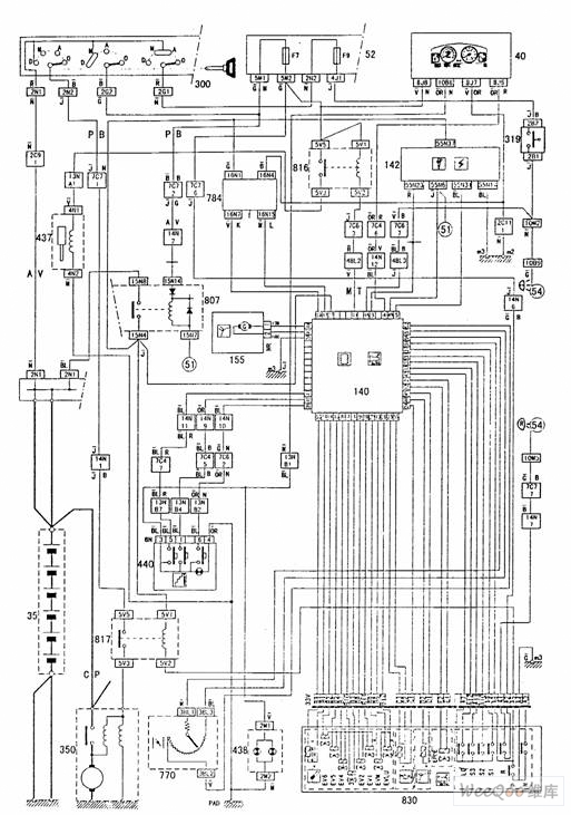 15-generator 35-battery 40- dashboard 50- 6 fuse boxes 52- 13 fuse boxes 140-electronic control units of automatic transmission 142-electronic control units of engine fuel injection 155-the sensor of output speed 319-brake switch 350- starter