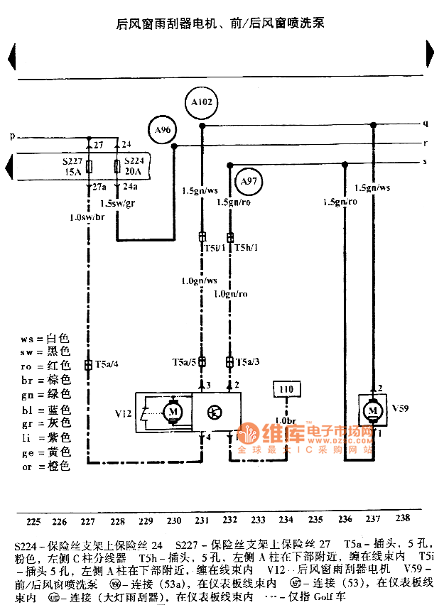 These pictures show the Golf Bora car light circuits.