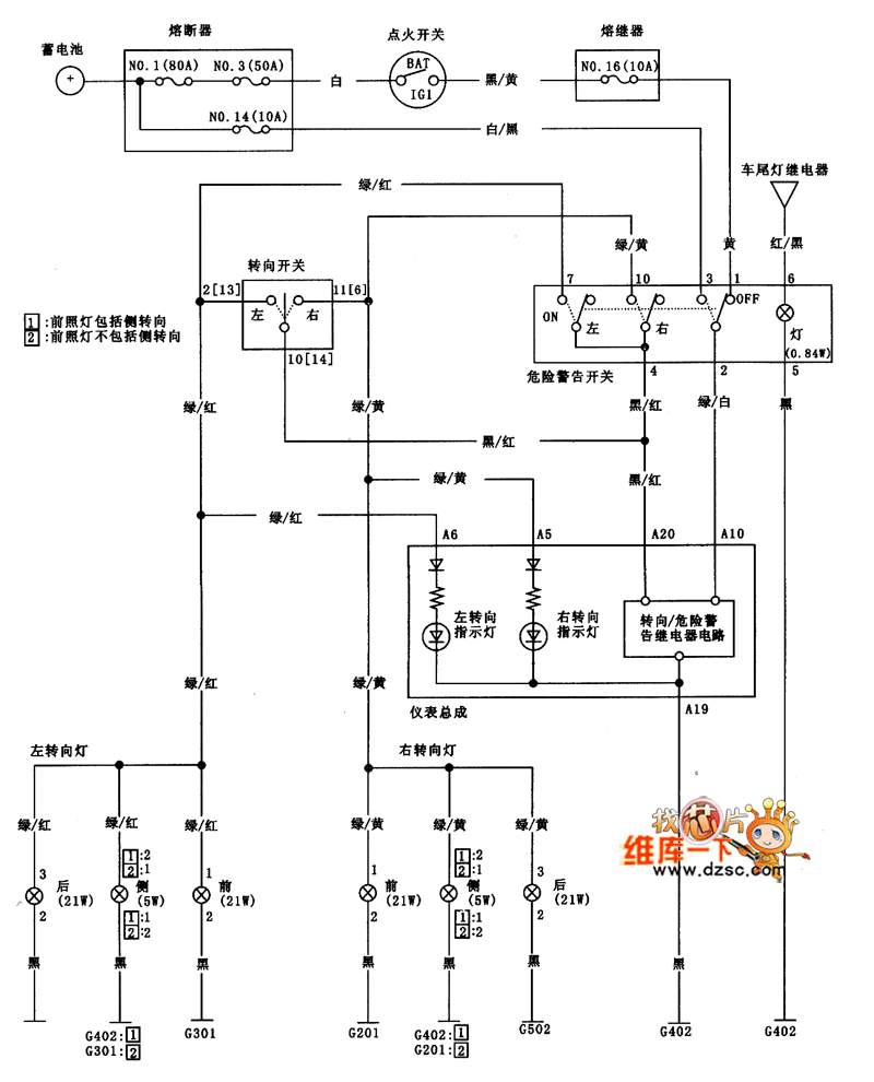 Guangzhou FIT steering lamp and hazard warning lamp circuit diagram is as shown