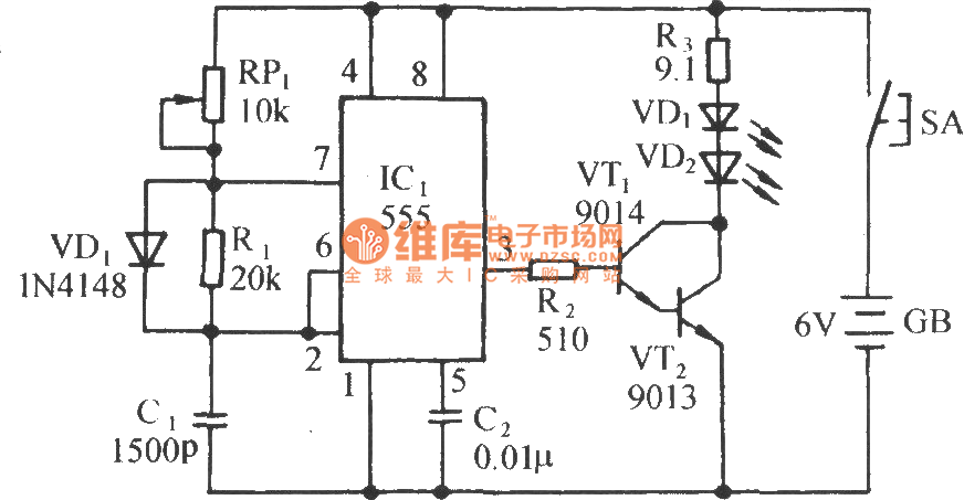 The circuit is shown above. It includes the infrared pulse transmitter circuit and the infrared receiver demodulation, decoding circuit in two parts. It can be used for remote control of household appliances such as electric fans, table lamps, electric curtains, etc.