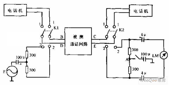 Imbalance test of circuit is shown as below. The output signal E is balance output in the test circuit. LM is the balance indicator, it is tested the talking path. And then the test will be finished.