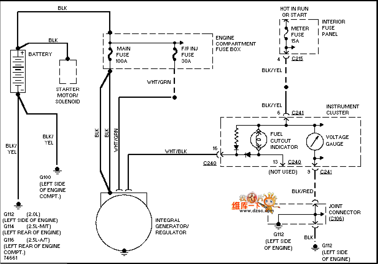 The Mazda 96PROBE(2.5L) charging system circuit is as shown in the figure: