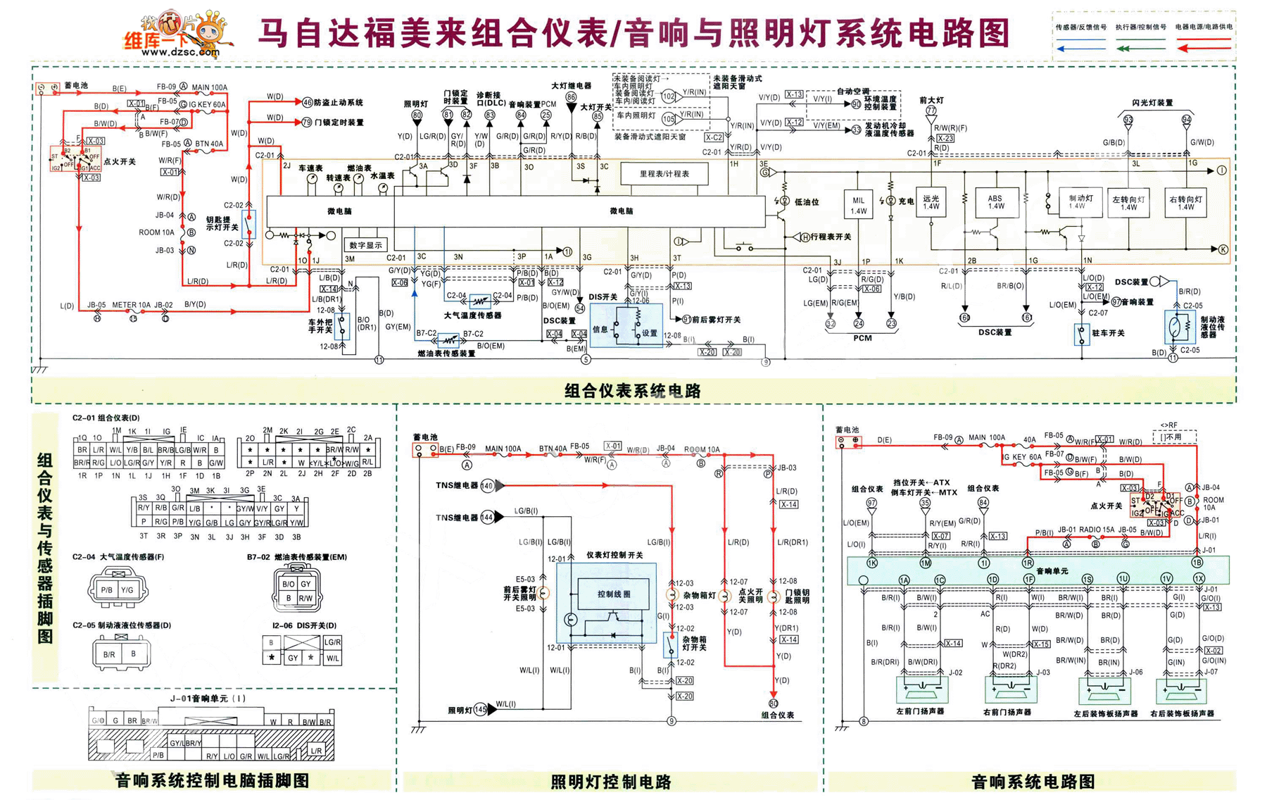 Mazda Familia combination instrument/sound and lighting system circuit is as shown: