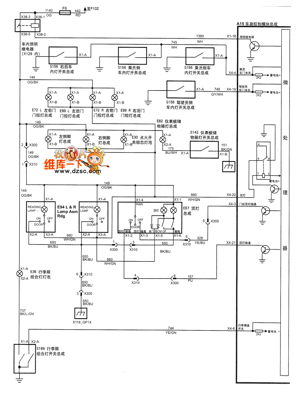 Figure SHANGHAI GM BUICK(Royaum) saloon car vehicle control module circuit diagram(eight)--dome light gate control switch-2 level and 3 level