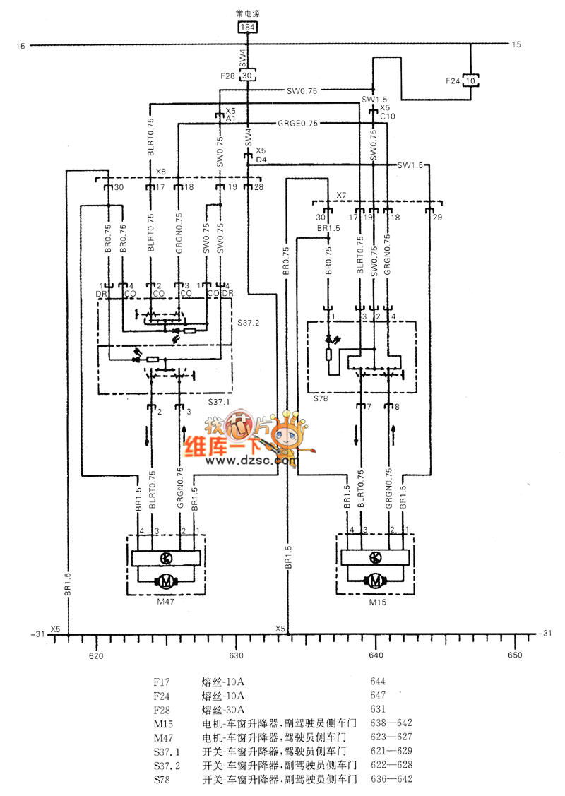 The Shanghai GM Chevrolet Sail Car Electrical Power Windows Circuit is shown below.