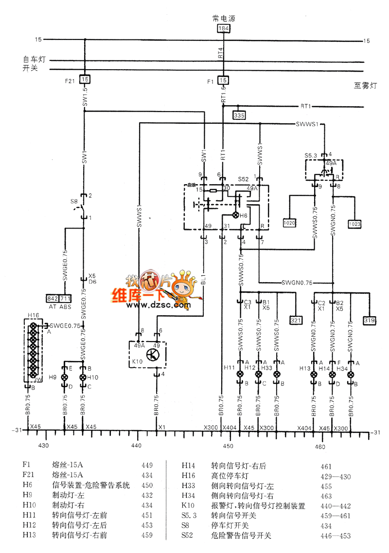 The Shanghai GM Chevrolet Sail Car External Lighting System Circuit (1) -- Turn light, turn signal anddanger warning light is shown below.