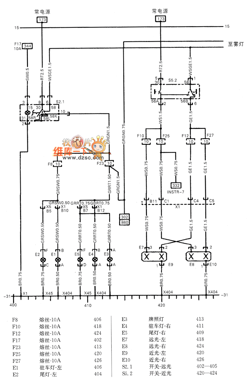The Shanghai GM Chevrolet Sail CarExternal Lighting System Circuit (3)--parking light, tail light and front headlight short-distance beam/ far beam is shown below.