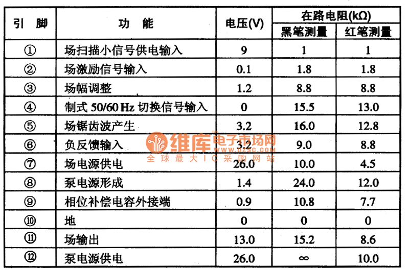 Table 1 The pin functions and data of the TA8445K