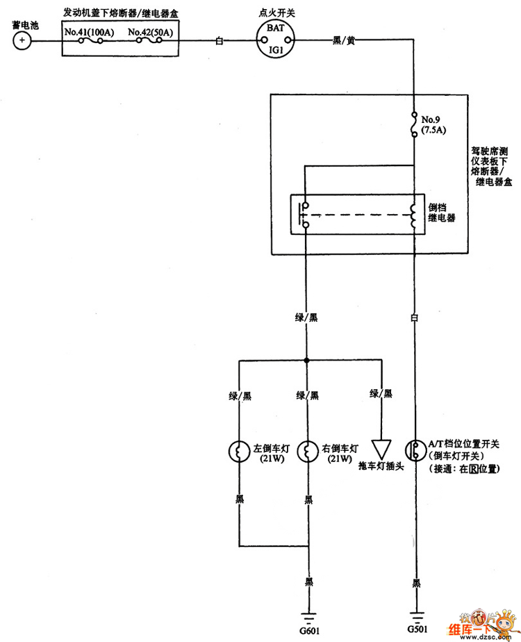 The Guangzhou Honda back-up lamp circuit is shown in the figure.