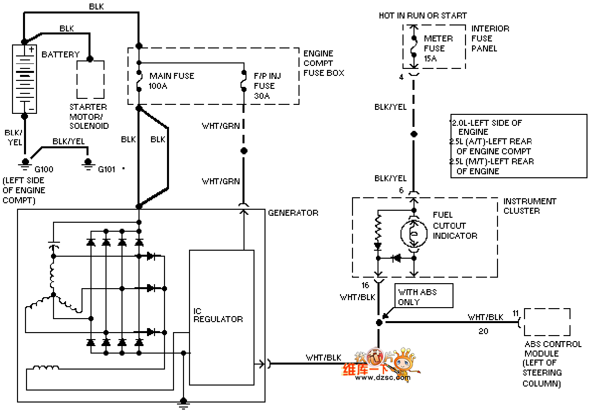 The Mazda 95PROBE charging system circuit is as shown in the figure: