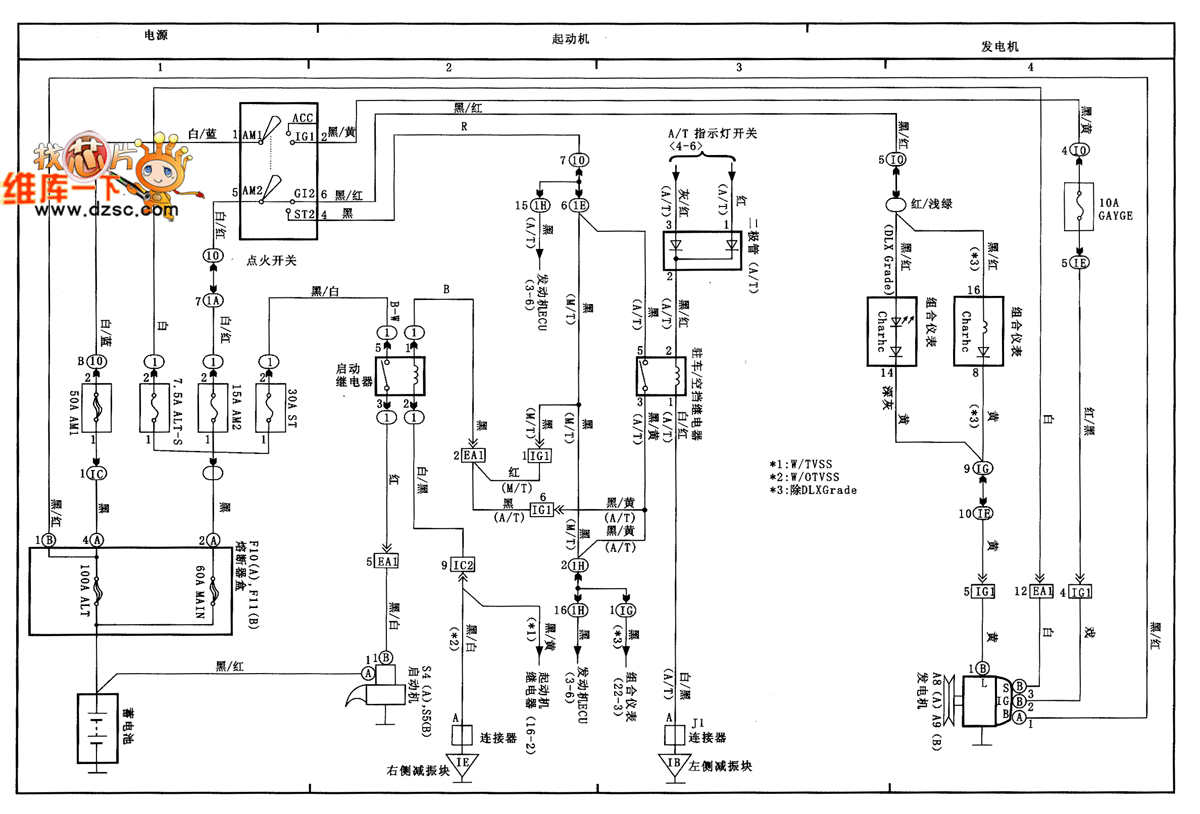 Tianjin VIOS power supply、electromotor and generator circuit diagram as shown: