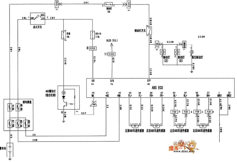 The Vizi saloon car ABS and brake light circuit is as shown in the figure: