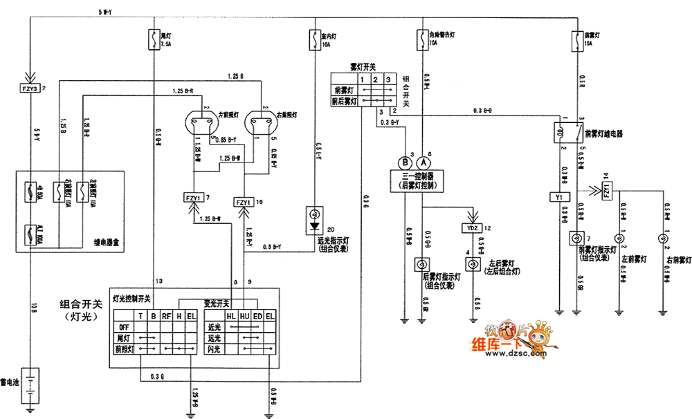The Vizi saloon car headlight, rear foglight and front foglight circuit is as shown in the figure: