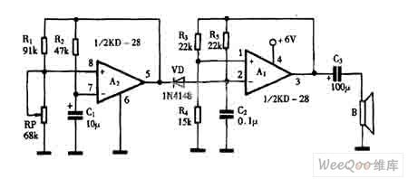 Using KD-28 to make beep sound generator circuit diagram is shown as above. (View)