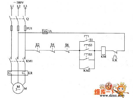 When the circuit is installed,you should install 51 abd S2,53 and 54,55 and 56 at three places.At the first place,when 51 is pressed,KM is conducted to pull in.The normally open contact is conducted.M works.When 52 is pressed,KM is released.M stops working.In the same way,when 52 is pressed at the second place or when 55 is pressed at the third place,KM will pull in.M works.When 54 or 56 is pressed.KM will release.M stops working.In this way,the electric motor can be controlled at three places.If you want to have more places to be controlled,you can just connect normally open control button in parallel or connect normally closed control button in series.