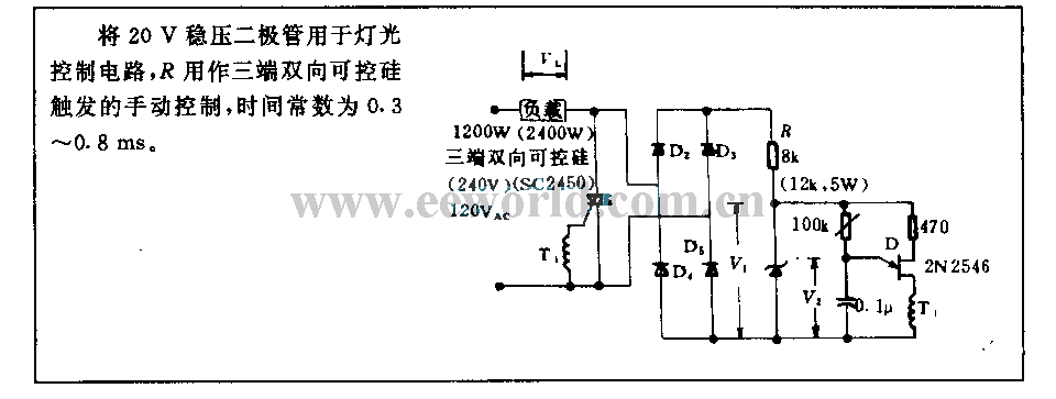 20V Zener diode will be used for lighting control circuit, R is usedfor the manual control ofTRIAC, the time constantis 0.3ms~0.8ms.
