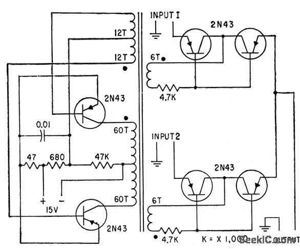 Square-loop-core oscilkttor drives chopper at up to 20 kc for continuously monitoring two d-c voltages.-J. W.Higginbotham And H. H. Douglass, Voltage Compctrator with High-Speed Switches, Electronics, 32:5, p56-58.