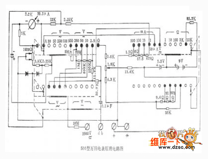 The 500 type multimeter circuit is as shown: