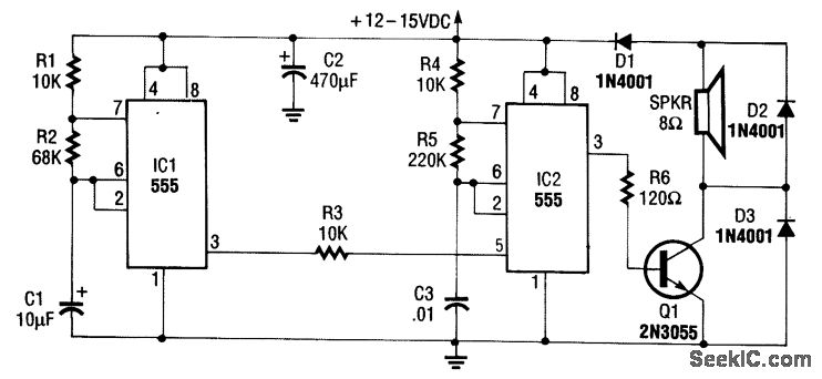 http://www.seekic.com/circuit_diagram/Basic_Circuit/ALTERNATE_WARBLE_TONE_SIREN.html
