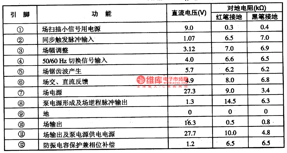 The AN5534 uses the 12-pin single row DIP package, and it can be used in the ChangHong IR2116N series color TV, the pin functions and data are as shown in table 1-18.