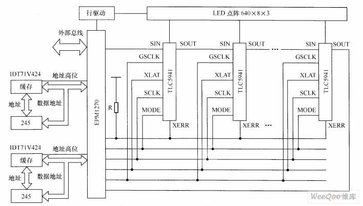 Here we introduce 640 x 480 full-color display system driving part design.The whole screen is composed of 4 subscreens and every subscreen manages 640 x 120 pixel range and they have single driving circuit.Because it is inner screen ,the driving design adopts dynamic scanning driving way.Drive circuit control is realized by programmable logic devices EPM1270 (Altera).