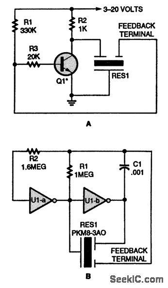 Three-terminal piezoelectric elements are typically driven by transistor circuits (A) or logic gates (B).