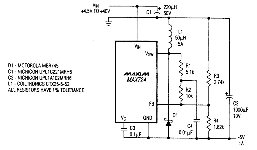 If a source of negative 5 Vdc is needed and only a positive supply is available, this circuit can be used.