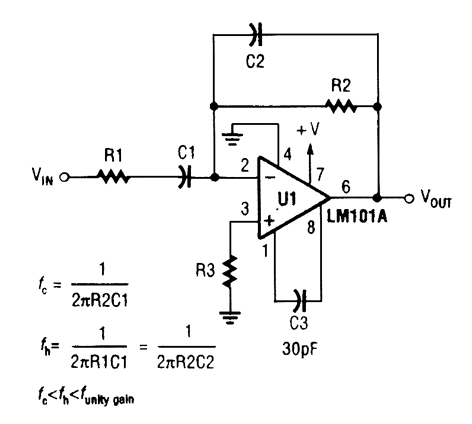 A differentiator has a high-pass charactenstic. Components are chosen by using the design equations.