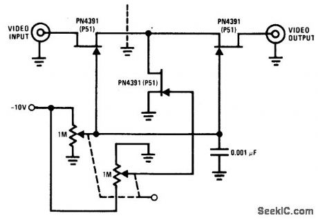 The PN4391 provides a low Rds(on) (less than 30 ohms). The tee attenuator provides for optimum dynamic linear range for attenuation and if complete turn-off is desired, attenuation of greater than 100 dB can be obtained at 10 MHz providing proper rf construction techniques are employed. (View)