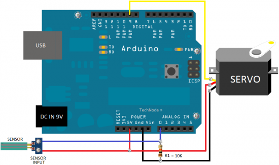 Wanna learn more about the Arduino platform? If you have an irresistible temptation to do some experiments using Arduino microcontroller, just try this simple “electronic” version of a “part fill” valve, wired using an Arduino, a standard hobby servo, and a home-made water sensor. When the Arduino notices the water level inside the rainwater tank is very low , it commands the servo to let the water flow from an alternate source!
