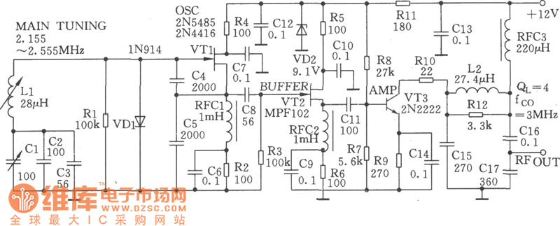 The Carat poured signal generator circuit is as shown. VTl is the variable LC oscillator formed by the typical high-stable Carat poured circuit. The capacity of the capacitance C4 and C5 is very large, and capacitance C4 and C5 can decide the feedback coefficient. The short flutter rate of drift, which is caused by the capacitance change, can be reduced by this carat poured signal generator.