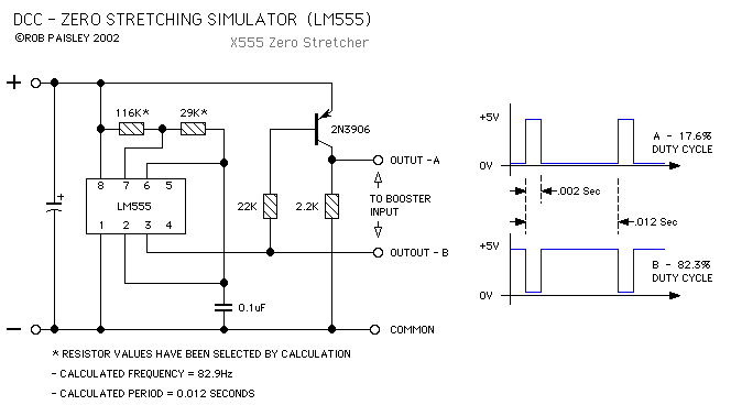 This circuit is designed to simulate the 'Zero Stretching' function of Digital Command Control systems used by model railroads.
