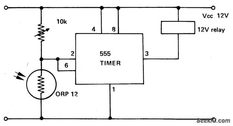 This circuit shows a 555 with its trigger and threshold inputs connected together used to energize a relay when the light level on a photoconductive cell falls below a preset value. Circuit can be used in other applications where a high input impedance and low output impedance are required with the minimum component count.