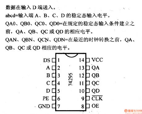 Absorption current is three times greater than LS295A; parallel input, parallel output; it has three operation modes with parallel register, and the right shift(direction is from QA to QD), left shift(the direction is from QD to QA). Data is input at the D-side.