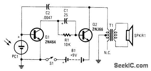 This electronic muslc maker uses an astable oscillator circuit that is controlled by a photocell.Thelight falling on the photo cell controls the tone.By mounting the circuit h a box,you can control lightreading PC1 with your hand.