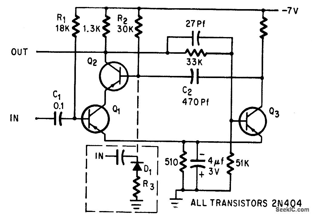 Q1 isolates triggering circuit from timing elements R2-C2, making duration of output pulse independent of input pulse amplitude and reducing minimum triggering voltage from 0.25 V to 0.l V.-J. Kalisz, Isolating Transistor Improves One-Shot, Electronics, 38:25, p 76.