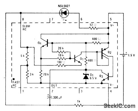 Addition of 1K resistor between pins 4 and 8 of National LM3909 IC in creases flash rate to about 3 times that obtainable when 300 μF is connected between pins 1 and 2. Modification of external connections gives choice of 3K, 6K, or 9K for internal RC resistors.- Linear Applications, Vol, 2, National Semiconductor, Santa Clara, CA, 1976, AN-154 ,p 2.