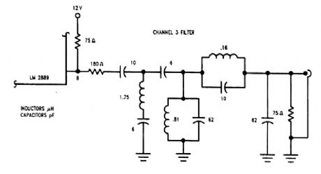 This filter is for CH3, in order to get a vestigial sideband TV signal. It is designed for 75-Ω im-pedance levels. (View)