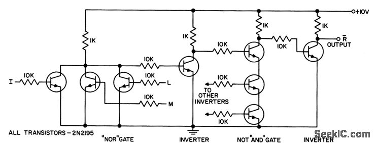 Inverter stages compensate for phase inversion of three parallel-transistor nor gates and three series-transistor not and gates.- Transistor Manual, Seventh, Edition, General Electric Co.,1964, p 177.