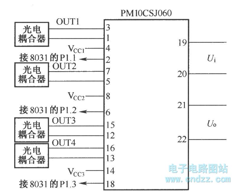 The connection of PWM signal and IPM intelligent power module PM10CSJ060 :